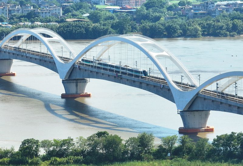 列車通過福州濱海快線烏龍江大橋(無人機照片)。 (2)