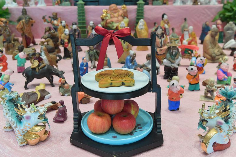 「擺塔」據傳源於明嘉靖年間,戚繼光將軍率領他的戚家軍來閩抗擊倭寇,取得節節勝利。一次勝利正逢中秋,老百姓紛紛把家裡的珍藏拿出來擺在廳堂上,或是在室外擺壘搭自然風景,營造歡慶勝利、歡度中秋佳節的氣氛,後相沿成俗。在福州,舊時中秋「擺塔」,農家娃拾瓦片、砌瓦塔;至夜,以柴點燃,火光四射。城裡人則擺泥塑或陶瓷人物形象,如關羽、張飛等,還會擺上燭台、花瓶、香爐等。