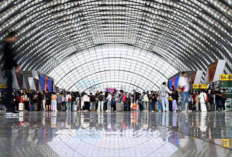 10月7日,國慶中秋假期進入尾聲,各地返程客流攀升。 (新華社)