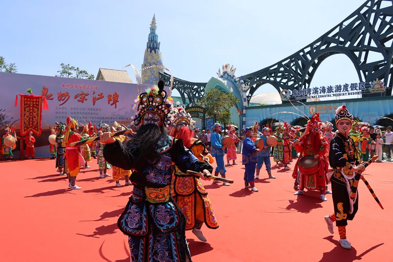國慶中秋假期期間,「宋江陣2.0」攜手潮汕英歌舞在僑鄉泉州各地進行多場聯合演出。(泉州台商投資區融媒體中心供圖)