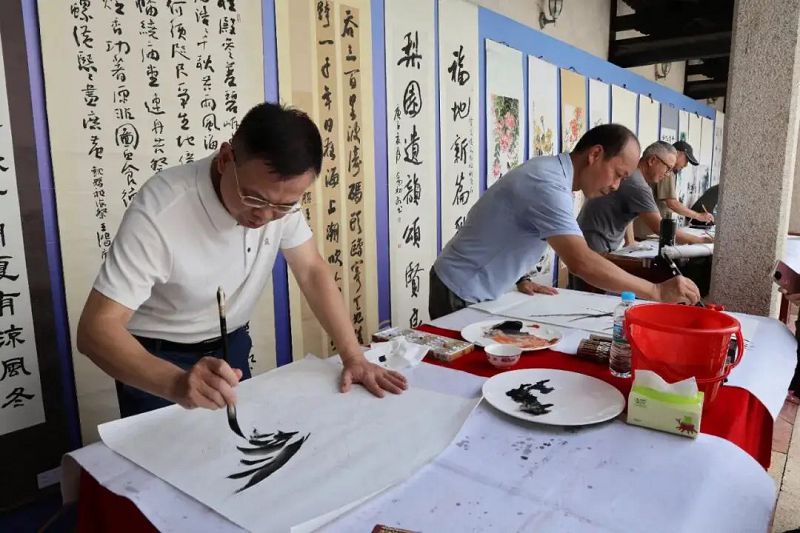 啟動儀式結束後,兩岸書畫名家現場開展了氣氛熱烈的現場筆會活動,兩岸書畫家們以墨會友、以筆傳情,在輕鬆而熱烈的氛圍中即興創作。頃刻間,一幅幅飽含深意的書畫作品在宣紙上流淌而出,在筆墨交融中深化文化認同、厚植兩岸情誼。