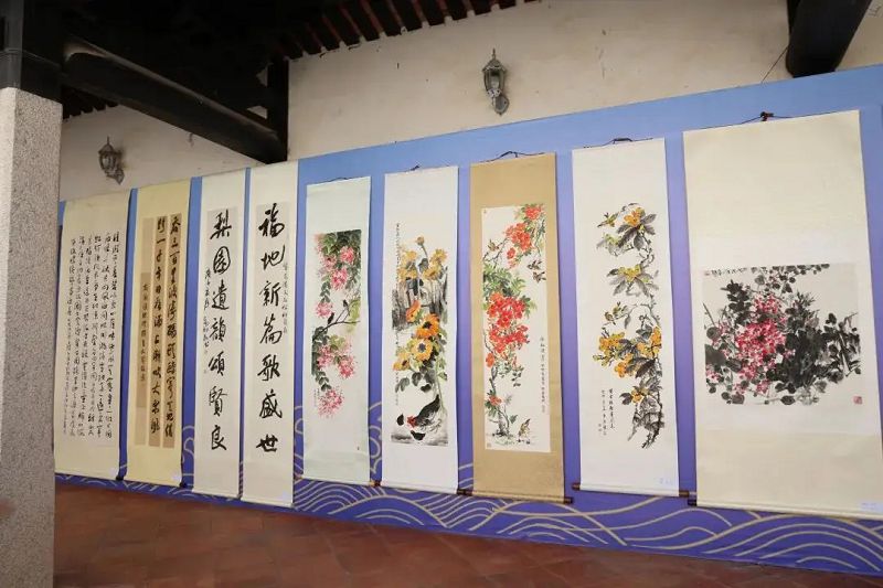 據悉,本次書畫展展期為10月17日至10月30日。現場展出了近百幅兩岸書畫作品,展品陣容強大。既有兩岸書壇名家的大作,也有大陸中青年書畫新秀的力作,更有來自台灣書畫名家的新創。作品題材豐富,風格多元。以弘揚媽祖文化為主旨,緊扣「兩岸一家親」的綿延主題,以書言志,以畫寄情,生動傳遞了兩岸人民同根同源血脈相連的深厚情誼。