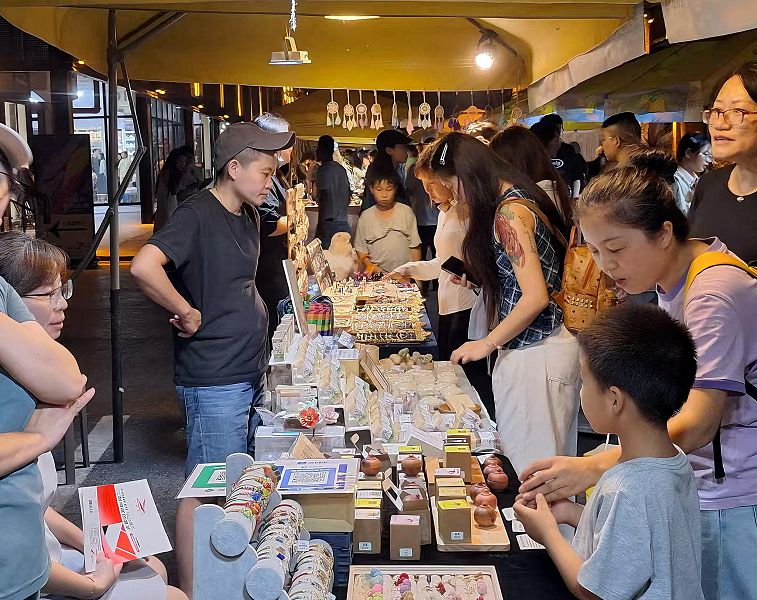 在陶溪川文創街區的「春秋大集」現場,台灣青年藝術家帶來融合寶島風情的釉彩小物、木雕工藝品等文創作品。大家一邊向往來遊客介紹作品背後的靈感,一邊與大陸青年創作者探討創作技巧,從釉料調配的比例到器型設計的巧思,不同風格的創意碰撞出精彩火花。遊客們駐足欣賞藝術家們的作品,不少人還當場下單。