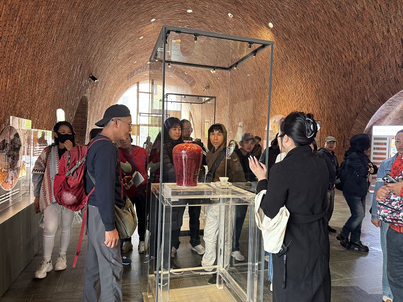 活動期間,台灣青年藝術家們走進景德鎮中國陶瓷博物館,聆聽講解員講述景德鎮千年制瓷史,感受陶瓷文化的深厚底蘊;漫步陶陽裡歷史文化街區,觸摸斑駁的老牆與古窯遺址,彷彿穿越時空,見證昔日瓷都的繁華;探訪浮梁古縣衙,在古色古香的建築中,瞭解古代景德鎮的行政與民生,感受歷史的厚重;打卡瓷宮,被絢麗多彩、由數萬片陶瓷鑲嵌而成的建築震撼,驚歎於陶瓷藝術的無限可能;走進瑤裡古鎮,欣賞青山綠水間的古樸村落,感受陶瓷文化與自然山水的完美融合。每到一處,大家都認真聆聽、積極提問,用鏡頭記錄下所見所聞,深入領略景德鎮陶瓷文化的多樣魅力。台灣青年藝術家們還專程參訪瓷博會展館,從傳統青花、粉彩到現代藝術瓷,館內集中展示的陶瓷作品令人目不暇接,大家仔細鑒賞、輕聲討論,並與參展商交流創作理念與市場趨勢。
