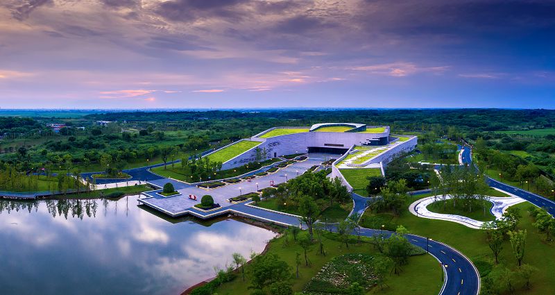 臨閉館,別急著走。繞到展陳樓後的濕地,那裡有一片齊人高的蘆葦。夕陽把蘆花點成金箔,風一過,萬千葦稈交織摩挲,簌簌作響——如雲端傳來古人的低語,碎碎切切,要透露一段被時光湮沒的秘辛。你不由得閉上眼,側耳追尋那絮語。倏忽間,兩千年前的駝鈴與叫賣聲,從蘆葦的縫隙裡一點點滲出來,涓涓淌入耳中。睜開眼,遠處遺址公園的燈盞倏然甦醒,流光一路淌過丘墟,像另一片溫柔的星空墜落人間——原來,我們與古人共用的,是同一條風的驛道。