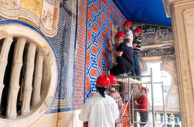 「我們不僅按設計要求還原了20世紀50年代因颱風倒塌的二樓涼亭,還精準保留了建築中『對場作』的痕跡,使僑厝更具文化溫度。」陳開達介紹,「對場作」是閩南傳統建築的特色之一,指同一建築左右兩側由不同匠師團隊分別獨立建造,暗含「比拚技藝」的意味,既對房主的經濟實力有要求,亦考驗著匠師的技藝水準。