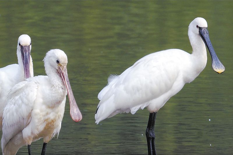 立秋過後,五隻白琵鷺受綠心森林公園濕地園環境吸引,與蒼鷺、白鷺、大白鷺等鳥類共同棲息覓食。而得到信息的愛鳥人士則抓緊趕來,拍攝這種長相特別的大鳥。