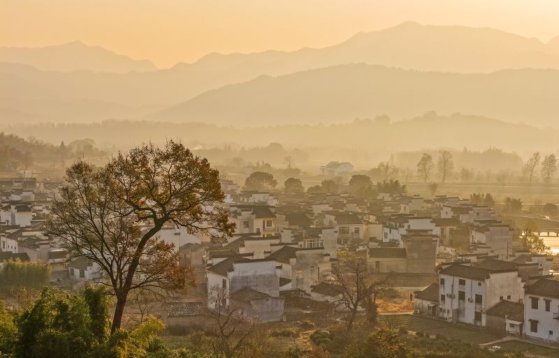 12月8日,安徽省黃山市黟縣宏村鎮冬景如畫,晨霧繚繞于白牆黛瓦的徽派民居之間,美不勝收。(中新社)