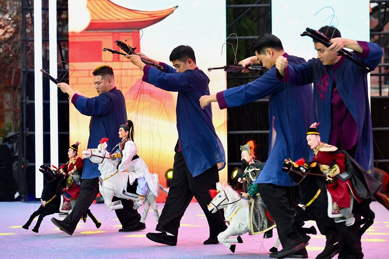 本次展演將持續至12月15日,來自中國、俄羅斯、阿根廷、埃及、荷蘭等國家和地區的37支木偶表演團隊、逾500名藝術家,將在泉州的劇場、社區、商場、學校等40多個場地開展近百場演出,演出內容涵蓋提線木偶、掌中木偶、杖頭木偶、鐵枝木偶、皮影戲、手偶、布偶、紙偶等多個種類,是歷屆展演參演人數最多、種類最齊全的一次。(中新社)