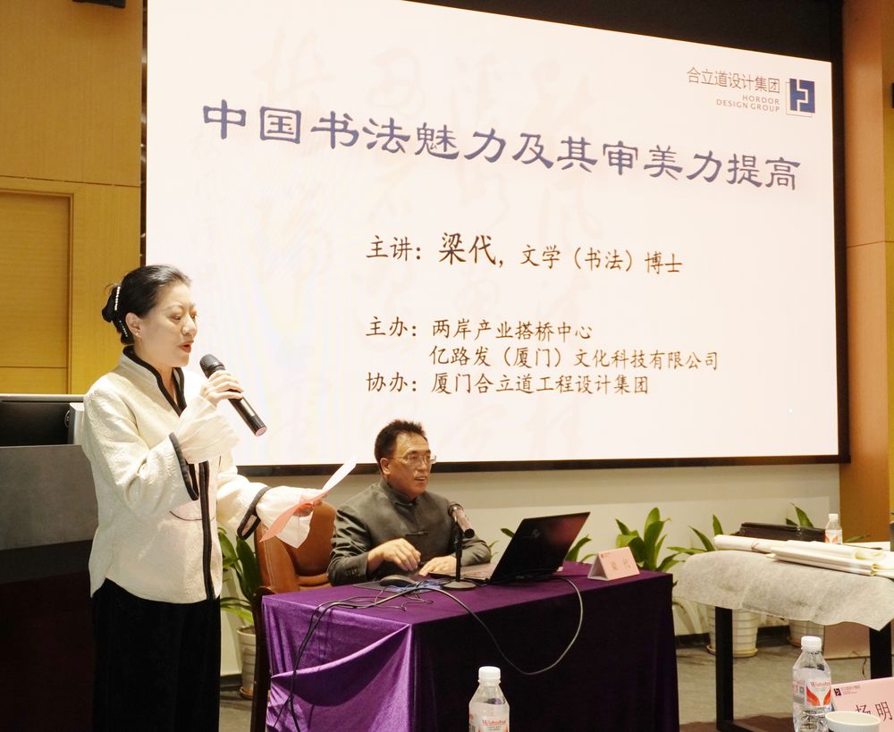 本次講座由兩岸產業搭橋中心、億路發(廈門)文化科技有限公司聯合主辦,廈門合立道集團協辦,特邀文學(書法)博士梁代主講。