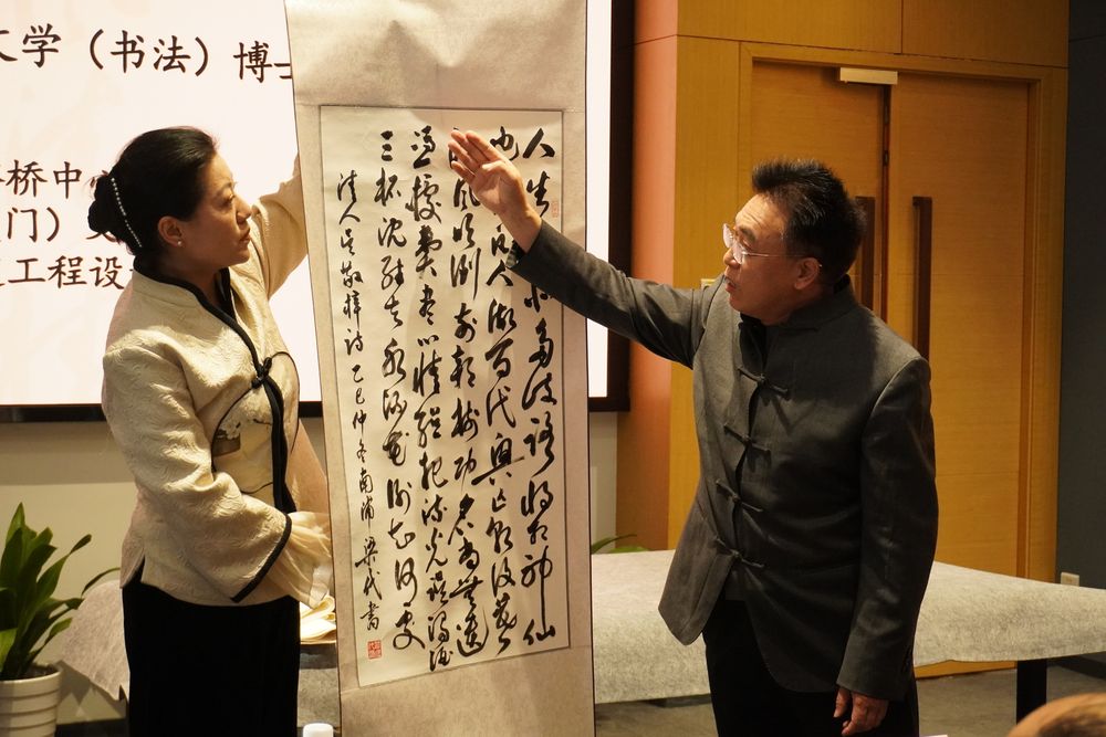 梁代博士以“用作品說話”為理念,創新採用“先創作,後講座”的形式,以一種別開生面的書法講座開啟方式,即興創作原創書法作品,筆墨間盡顯書法藝術底蘊,其精湛的技藝與生動的創作過程,直觀展現書法藝術的筆墨韻味與創作活力,贏得現場陣陣掌聲,聽眾紛紛點贊講座精彩鮮活、極具感染力。