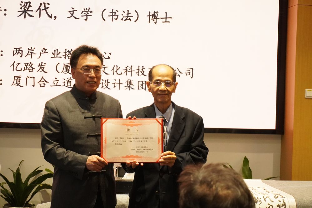 活動現場,兩岸產業搭橋中心、億路發(廈門)文化科技有限公司張宇廷董事長全程大力支持,為推動活動順利開展保駕護航,並正式聘請梁代博士為中心“文化顧問”,現場頒發聘書,助力兩岸文化交流持續深化。廈門合立道集團魏偉董事長亦全力協辦,為活動提供優質場地與保障,為文化交流搭建堅實平臺。
