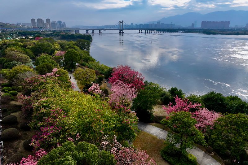 12月19日,航拍福建福州江濱美景。近日,福州冬日暖陽,不少市民前往公園慢跑、散步,享受著暖冬裡的休閑時光。( 中新社)