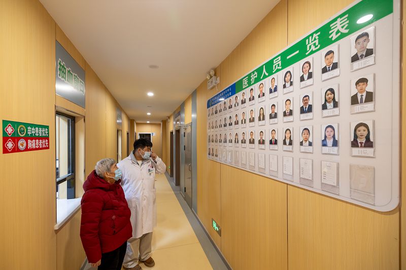 姚梅妹在八開鎮中心衛生院觀看牆上的「醫護人員一覽表」。