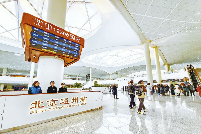坐落於北京城市副中心綜合交通樞紐內的北京通州站近日正式開通投運,北京「八站兩場」綜合交通樞紐格局成型。運營初期,北京通州站開行12對旅客列車,至燕郊站、寶坻站、唐山站、北辰站(天津)、秦皇島站最快分別為11分鐘、26分鐘、55分鐘、56分鐘、90分鐘可達,進一步縮短京津冀城市間的時空距離。