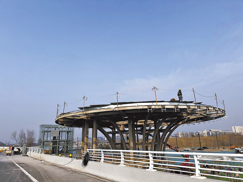 備受關注的六環高線公園建設項目正加緊施工,近日,啟動段部分已可見服務驛站、自行車棧道等設施。預計今年「五一」,啟動段將面向公眾免費開放。屆時,公園還將舉辦麵包節、文藝演出等豐富活動,市民遊客將可率先一睹這座城市空中大花園的嶄新面貌。